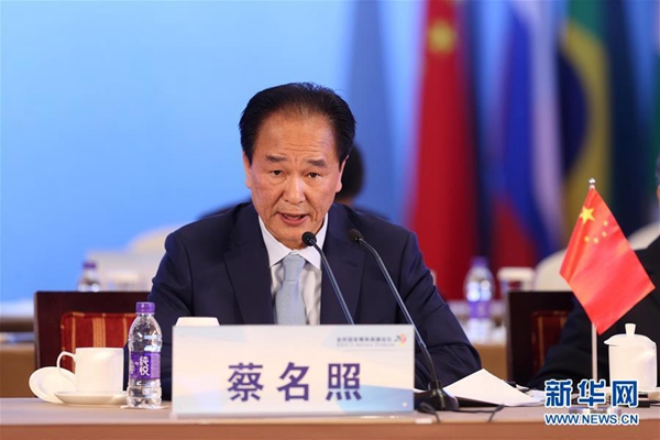 金砖国家媒体高端论坛执行主席、新华通讯社社长蔡名照主持开幕式并发表题为《深化金砖媒体合作实现共建共享共赢》的主旨演讲。他指出,论坛的成功举办,有助于为今年9月在厦门举行的金砖国家领导人会晤营造良好氛围,推动金砖国家合作交流不断走向深入。