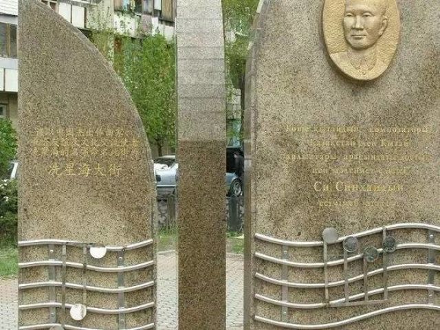 哈萨克斯坦阿拉木图市冼星海大街上的冼星海纪念碑。