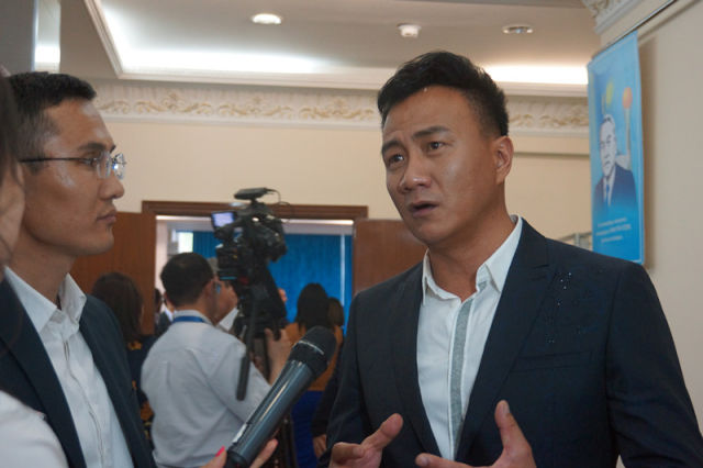 主演胡军在接受哈萨克斯坦媒体采访。