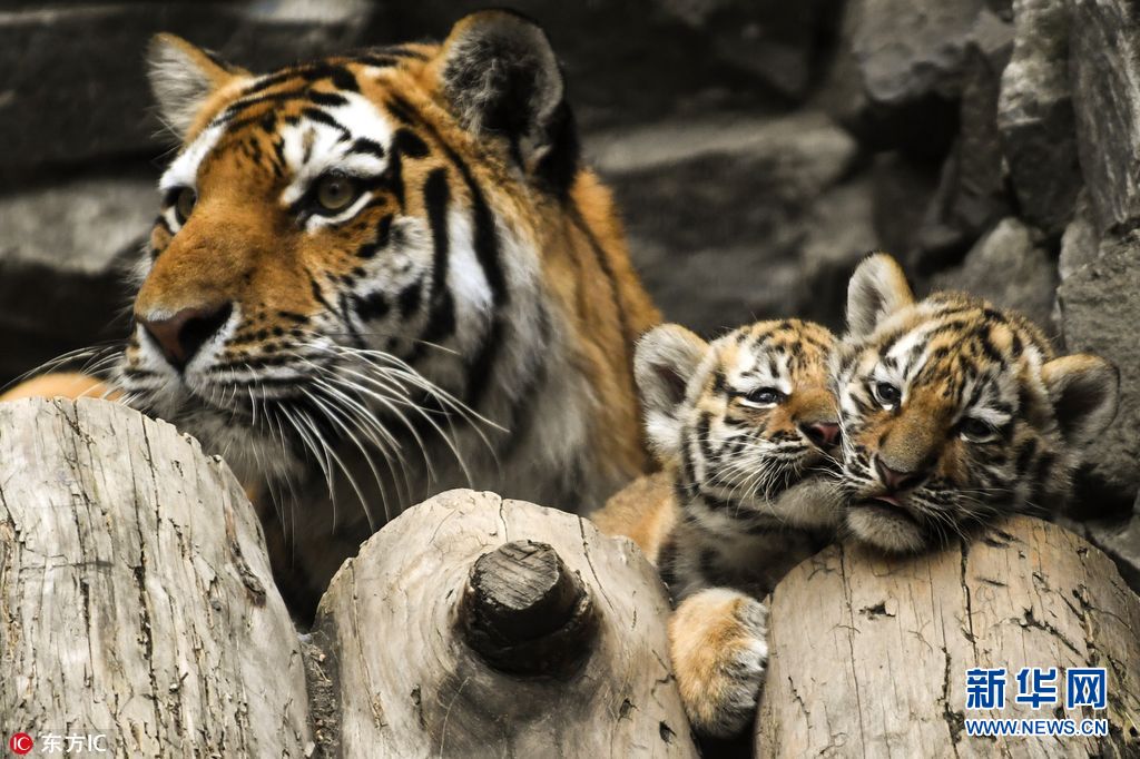 当地时间2017年6月10日,俄罗斯新西伯利亚,西伯利亚虎妈妈Lapa与它的幼崽在新西伯利亚动物园中玩耍。这对虎崽子是今年4月24日,Lapa与雄性西伯利亚虎Maximus诞下的。(图片署名: 东方IC)