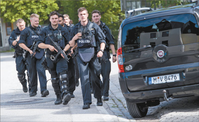德国慕尼黑一轻轨站6月13日发生枪击事件,造成包括凶手在内的4人受伤。图为警察抵达枪击事件现场附近。 新华社发
