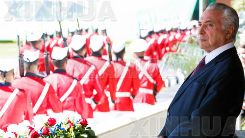 6月9日,巴西总统特梅尔出席在首都巴西利亚举行的一场纪念活动。(新华社发,巴西总统府供图)
