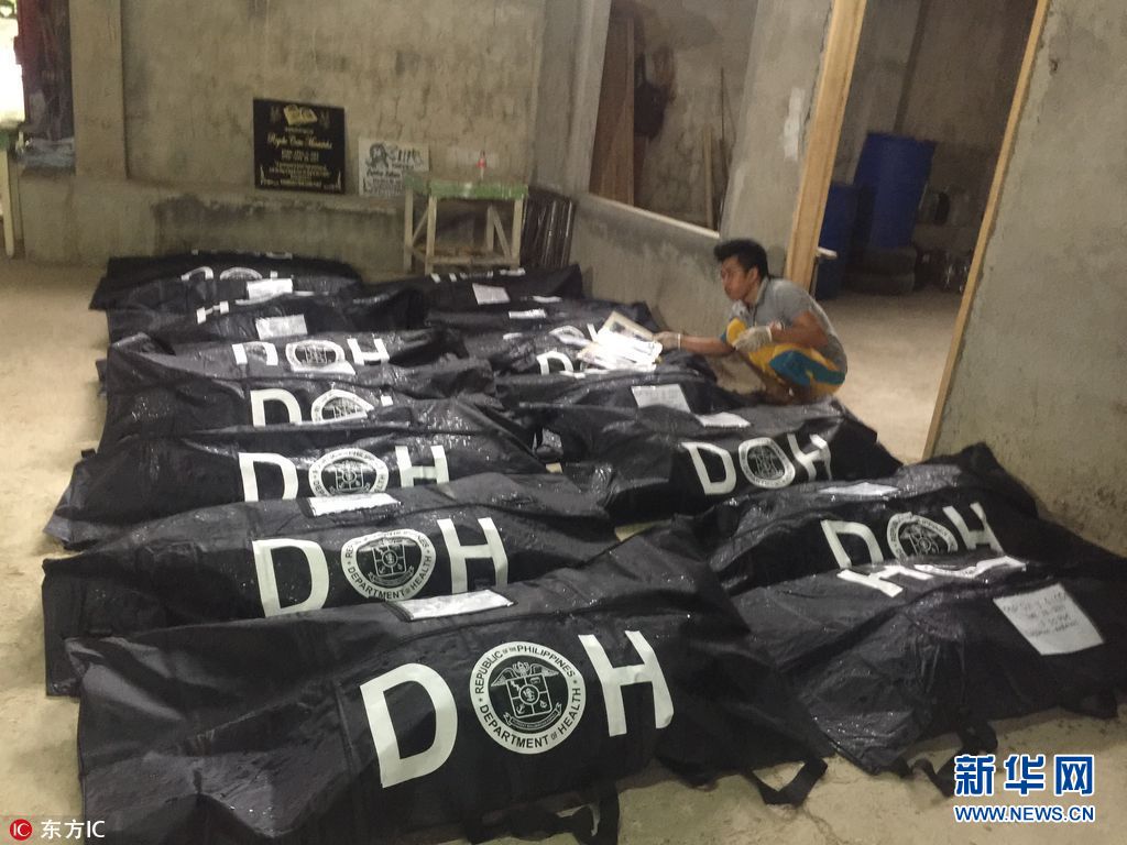 当地时间2017年6月28日,菲律宾马拉维,菲律宾军方在马拉维市发现17具平民的尸体,据调查者发现,一具尸体的手中握着自制的手榴弹。据军方发言人帕迪拉介绍,这些平民死于“恐怖分子的暴行”,叛军迫使平民拿起武器参与战斗。(图片来源: 东方IC)