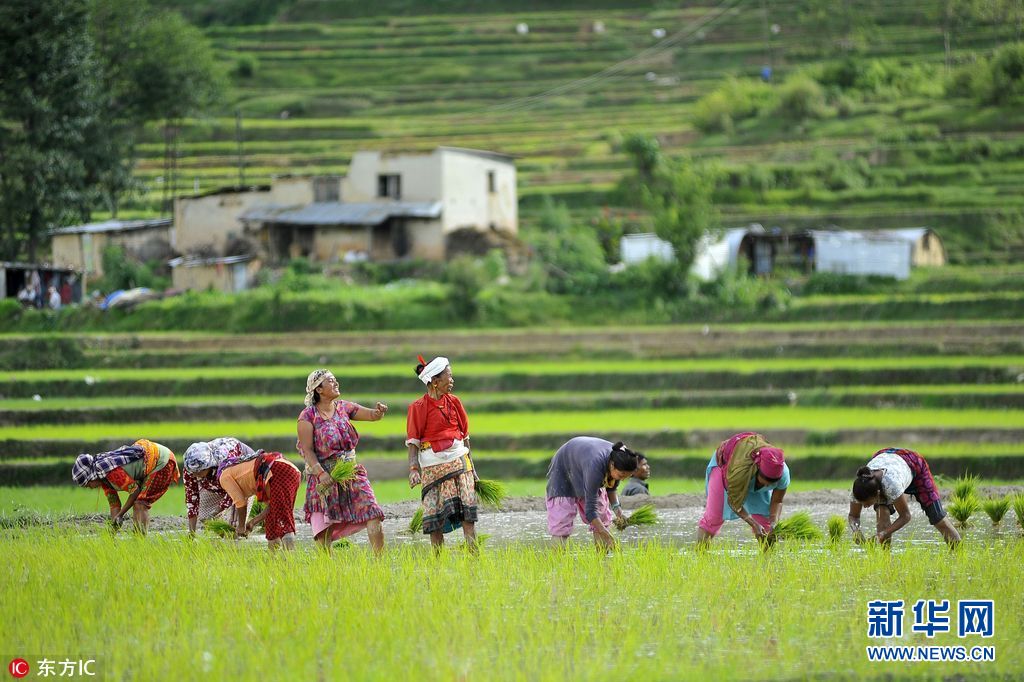 当地时间2017年6月29日,尼泊尔加德满都,当地庆祝国家水稻日,农民在稻田里互泼泥浆庆祝。国家水稻日标志着水稻种植季,农民会用泼泥浆等传统方式庆祝开耕,祈盼风调雨顺五谷丰登。(图片来源: 东方IC)