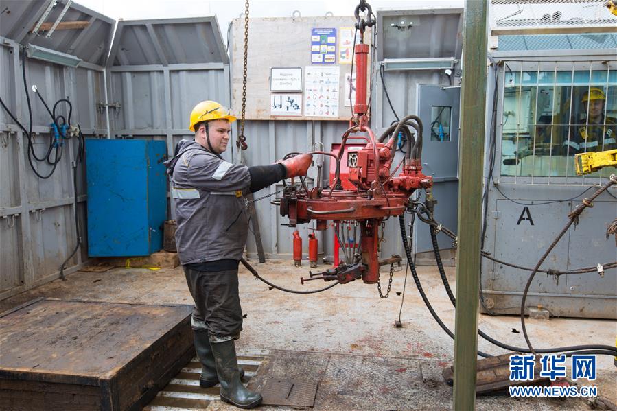 6月2日,在俄罗斯伊热夫斯克,工人在UDM项目钻井现场作业。新华社记者白雪骐摄