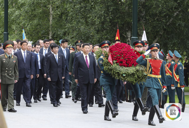 7月4日,国家主席习近平在莫斯科向俄罗斯无名烈士墓敬献花圈。新华社记者 谢环驰 摄