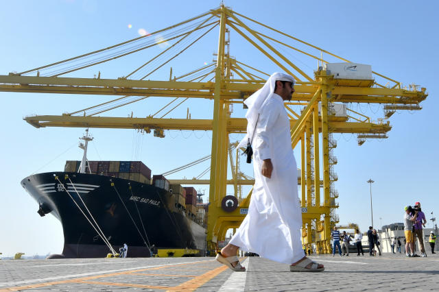 2017年6月14日,一名男子从卡塔尔首都多哈的哈马德港口走过。(新华社发)
