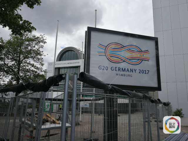 (汉堡峰会主场地外的媒体中心门口,新华社记者刘杰摄)