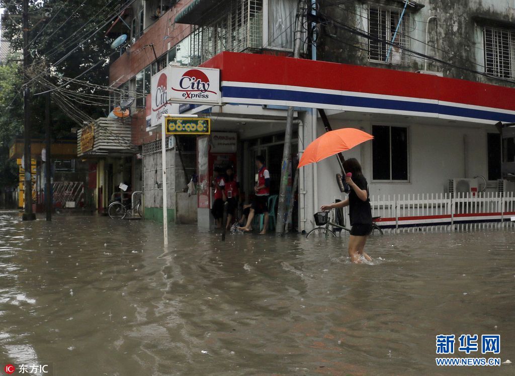 缅甸暴雨引发洪灾 街道变河道(组图)