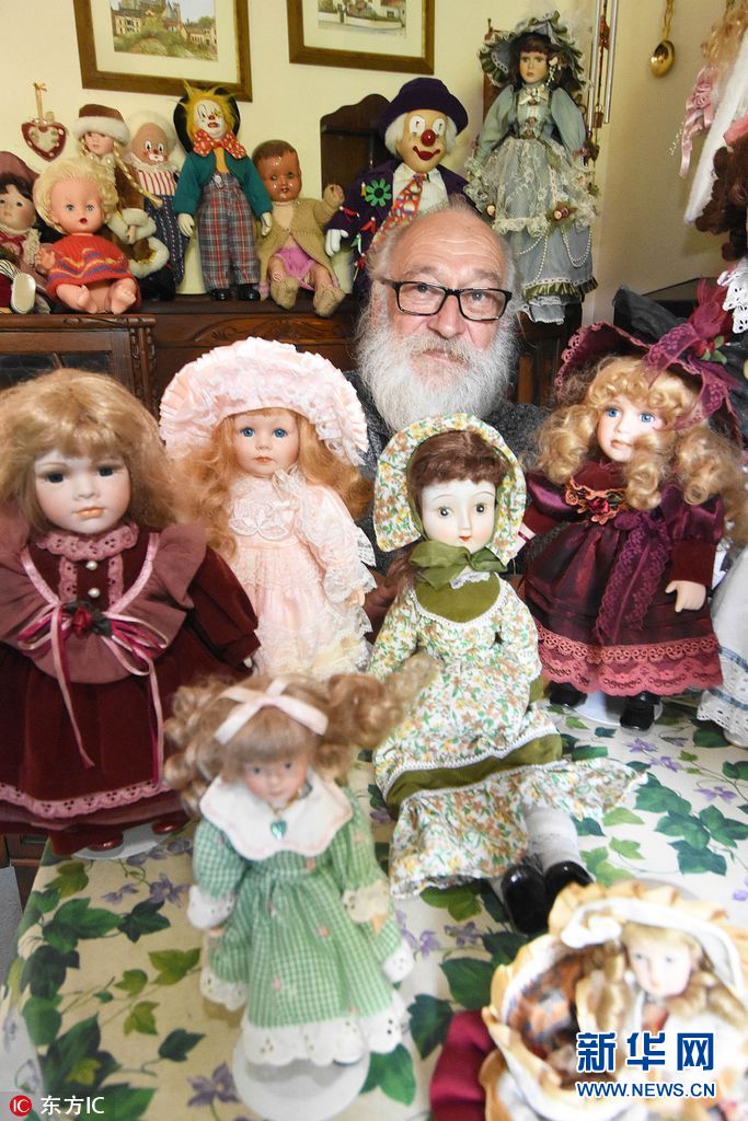 2017年7月13日报道(具体拍摄时间不详),一位父亲喜欢收集诡异的瓷娃娃,把自己的孩子都吓得不敢在家待。63岁的Barry Collingswood来自英国德文郡的金斯布里奇,全职照顾56岁的妻子Sarah。8个月前Barry开始喜欢上收集瓷娃娃,对于他的新爱好,Barry的家人感觉到很恐怖。18岁的儿子Josh被吓得搬出去,他将满屋的娃娃比作2014年的恐怖电影《安娜贝尔》。Josh不想生活在每天被无数双眼睛盯着的恐怖中。(图片来源: 东方IC)
