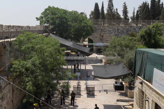 本月14日,3名以色列警察在耶路撒冷圣殿山(穆斯林称为“尊贵禁地”)外区域遭枪击,其中两人身亡。随后以色列封锁了事发区域,禁止穆斯林前往礼拜。16日,以警方开始逐渐开放位于圣殿山上的阿克萨清真寺,但在入口处加装金属探测门和摄像头。穆斯林群体不满以方做法,持续举行抗议活动,部分抗议酿成冲突,已经造成至少10人死亡、逾500人受伤。