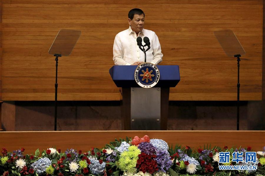 7月24日,在菲律宾马尼拉,菲律宾总统杜特尔特在国会发表年度国情咨文。杜特尔特24日在国会发表年度国情咨文时表示,菲律宾政府将不遗余力地将反毒行动进行下去。 新华社发(鲁埃勒·乌马利摄)