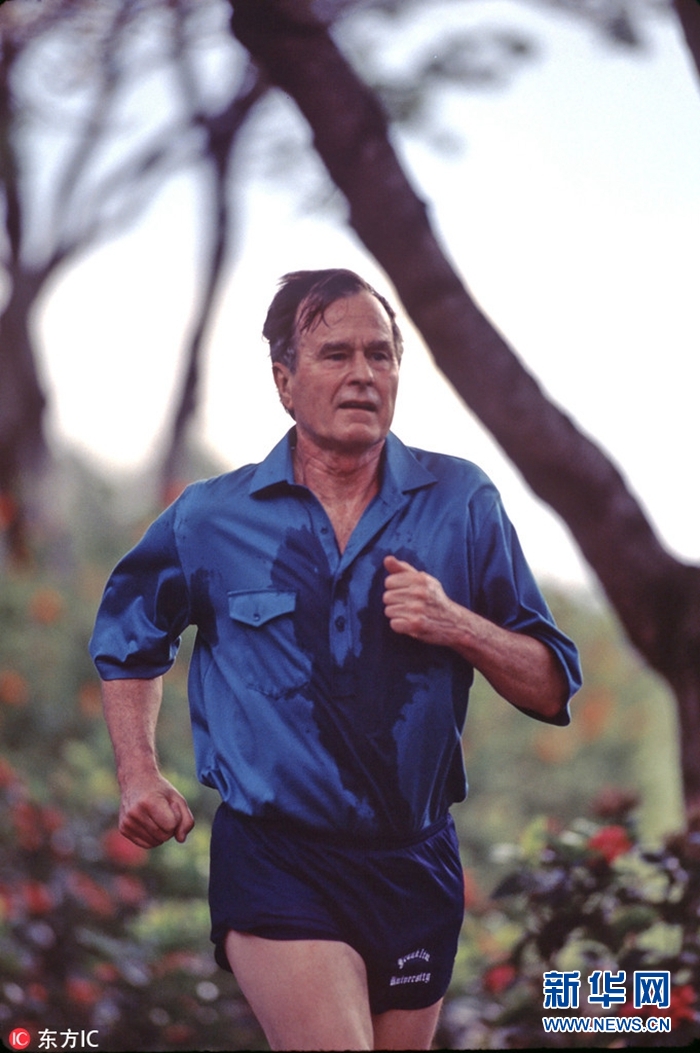 1990年,老布什在美国佛州度假时跑步。(图片来源:东方IC)