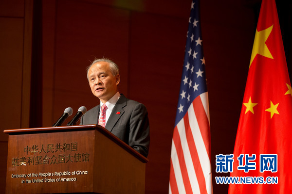中国驻美大使崔天凯在招待会上致辞。新华网发 沈霆摄