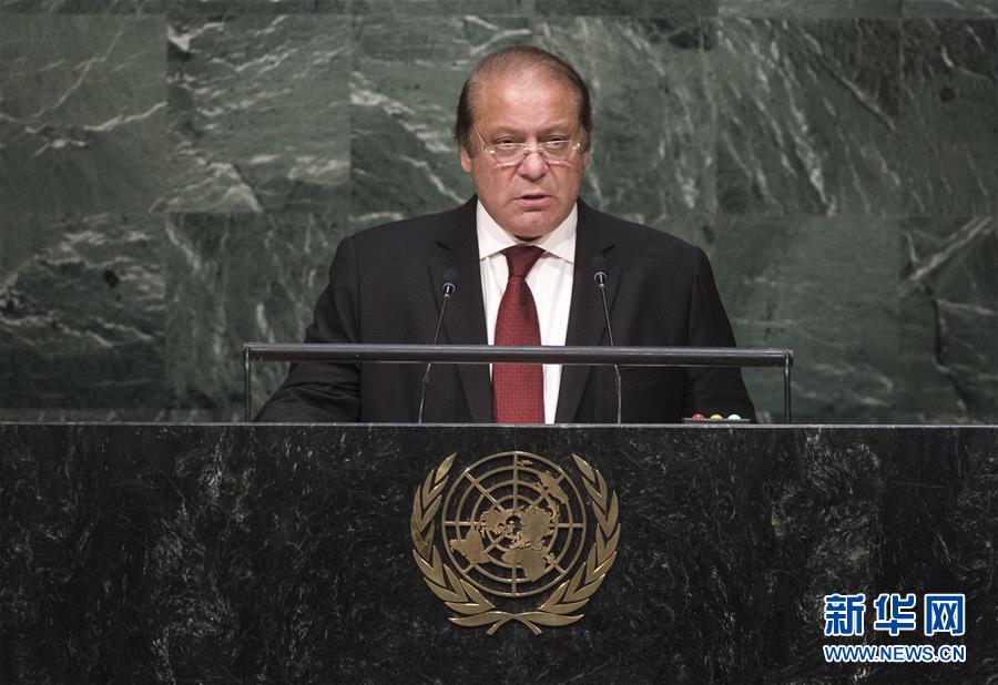 这是2015年9月30日在纽约联合国总部拍摄的巴基斯坦总理谢里夫在联大一般性辩论上发言的资料照片。 新华社发