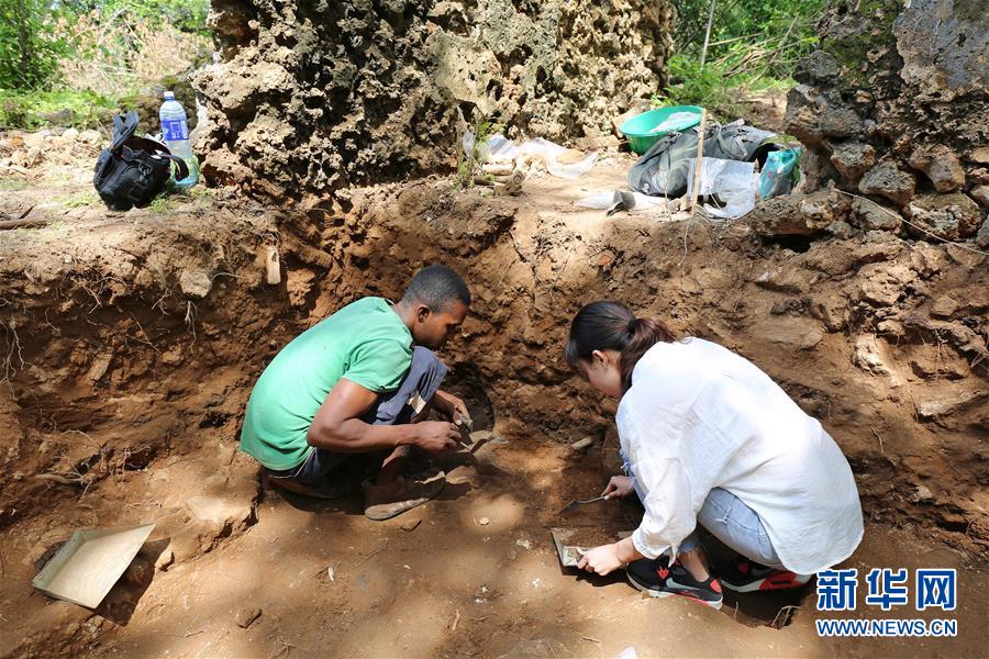 7月2日,考古队在曼达岛考古遗址现场进行发掘工作。在肯尼亚拉穆郡曼达岛28日开幕的首届“古今中国与东非联系国际论坛”上,由中国、美国和肯尼亚专家组成的联合考古队宣布在曼达岛发现了具有中国血缘的3具人骨遗骸,其中一人可能生活在郑和下西洋的时代。新华社发