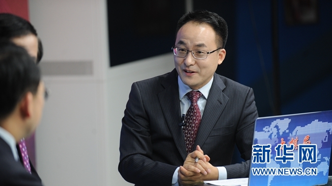 系列高端访谈《大棋局》第一期《走近世界舞台中央的中国》。图为特约主持人、新华社《环球》杂志副总编辑刘洪。