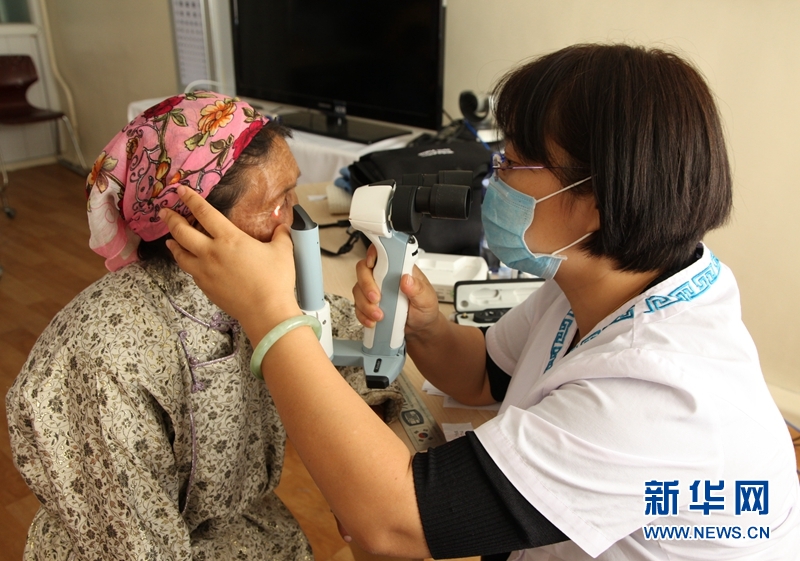 7月31日,蒙古国中央省,中国医生为蒙古国中央省患者义诊。新华网记者阿斯钢 摄