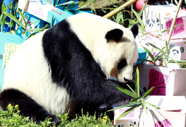 新华社维也纳8月7日电(记者王腾飞)大熊猫“福伴”悠然自得地坐在花园里,在众多“粉丝”的祝福下,慢慢打开生日礼物尽情享用;“福凤”害羞地躺在花园一侧,对游人的热情似乎全然不顾……