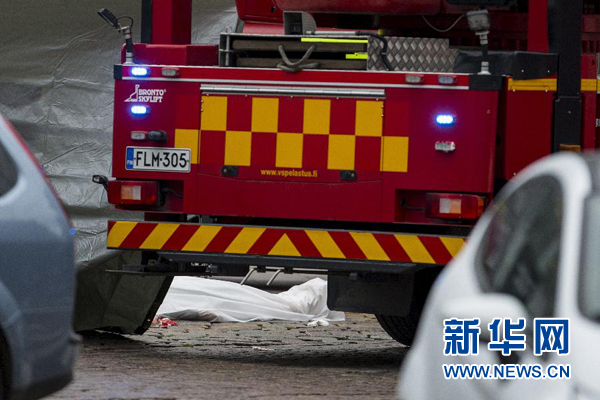 这是8月18日在芬兰图尔库拍摄的被覆盖的持刀行凶事件遇难者遗体。新华社/美联社