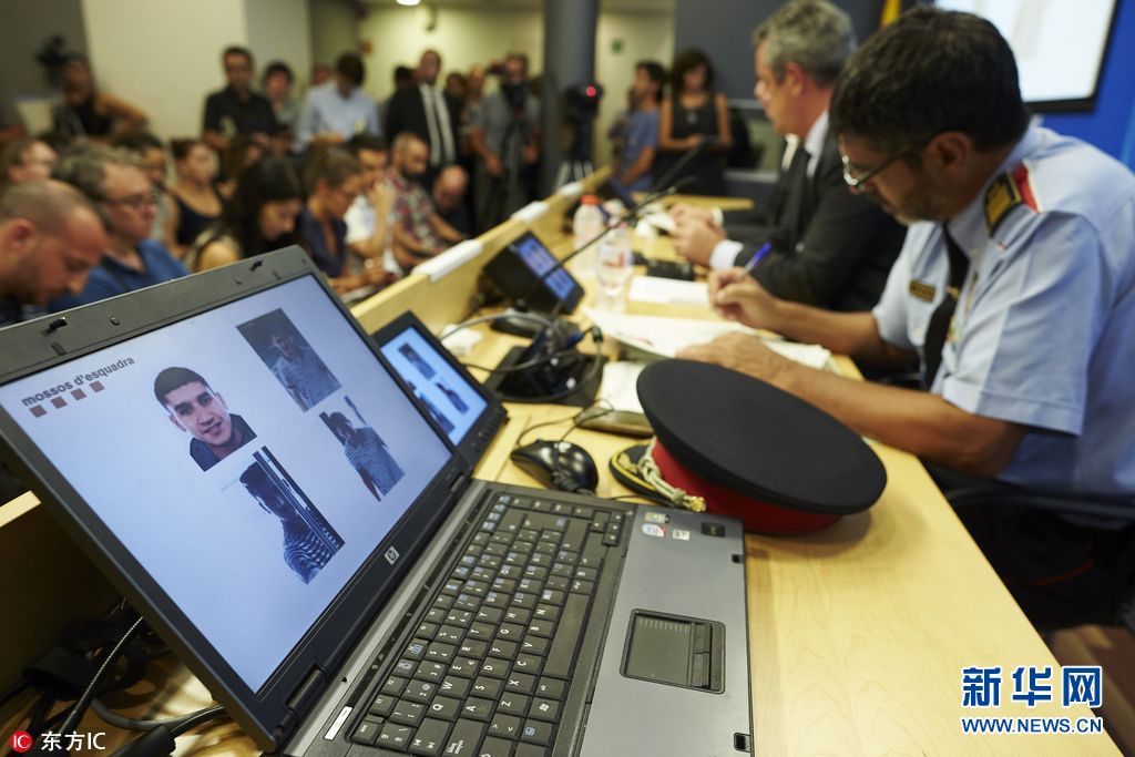 当地时间2017年8月21日,西班牙巴塞罗那,加泰罗尼亚自治区内政部长与警察长等出席记者会。