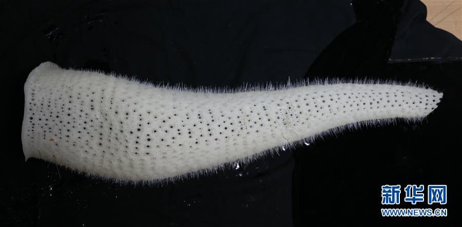 这是“发现”号遥控无人潜水器采集到的偕老同穴海绵(8月14日摄)。