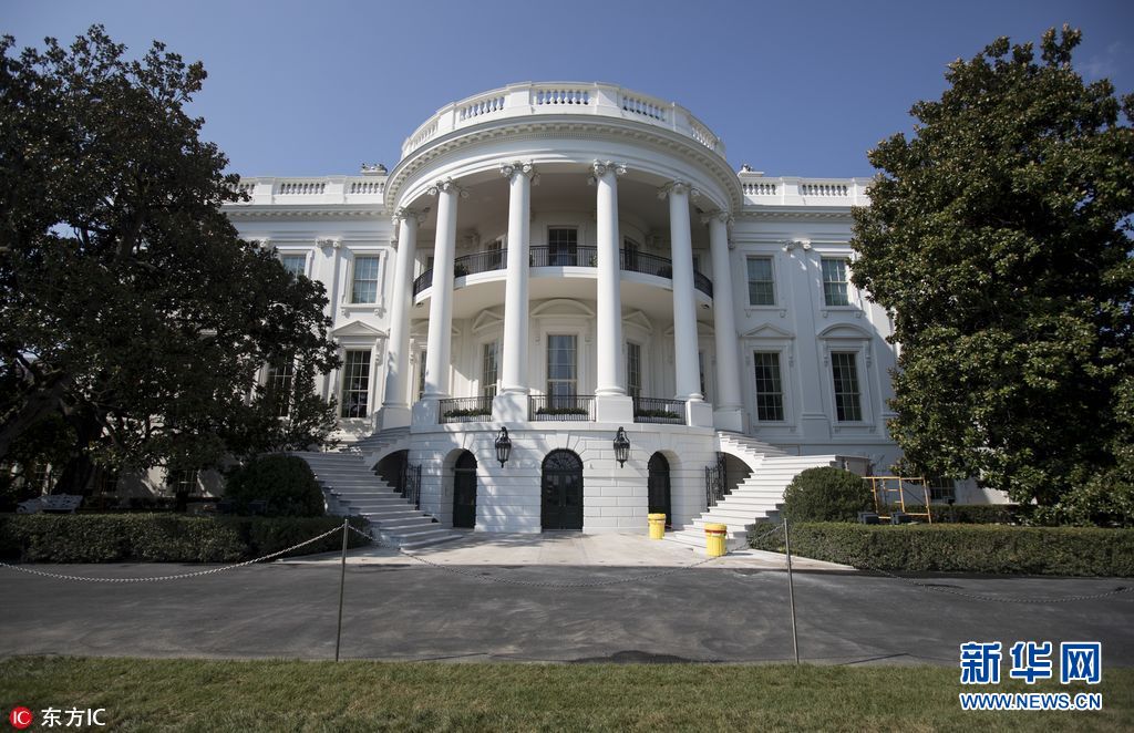 当地时间2017年8月22日,美国华盛顿,白宫装修后的内部照片曝光, 焕然一新富丽堂皇。图为装修后的白宫门廊。(图片来源:东方IC)