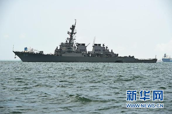 8月21日,美国海军“约翰·S·麦凯恩”号导弹驱逐舰抵达新加坡樟宜海军基地附近海域。当日,美国海军“约翰·S·麦凯恩”号导弹驱逐舰在新加坡东部海域与一艘商船相撞,事故造成10名船员失踪、5人受伤。 新华社发(邓智炜摄)