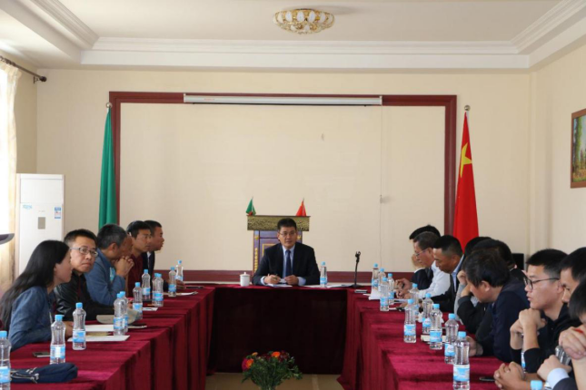 次日,杨大使在陪同王勇国务委员访问铜带省后,即在当地召开有关企业座谈会,向他们表示了慰问,并了解相关企业情况和诉求。座谈会结束时,当地华侨华人代表向杨大使赠送了“维护华人利益,尽心尽职尽责”匾,表达对使馆积极维护华侨华人利益的感激之情。同日,杨大使返回首都卢萨卡后,即约见赞外长卡拉巴,就维护在赞中国民营矿企合法权益问题深入做对方工作。使馆亦根据企业诉求积极与赞方继续沟通,处理相关后续事宜。