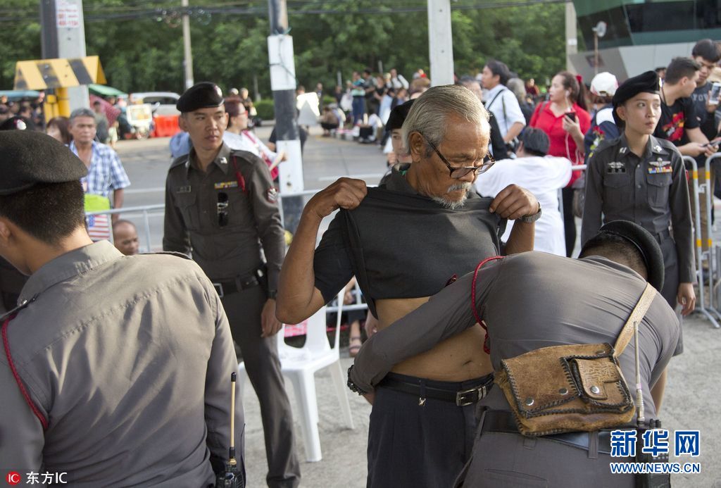 当地时间2017年8月25日,泰国曼谷,泰国最高法院将对前总理英拉的大米补贴案进行宣判,英拉支持者连夜等在法院外,警方加强安全检查。据估计,将有3500名支持者前往法院等候裁决。为防现场发生冲突,泰国政府调派4000名警员和军人前往法院维护秩序。英拉在执政时推行数十亿美元的大米收购计划,导致泰国政府在2011年至2012年间蒙受2866亿铢亏损,她本人也因此受到渎职指控。英拉7月在结案陈词中称,大米收购计划旨在帮助穷人,希望能增加农民的收入。她还指责针对她的指控是以现任总理巴育为首的政府所展开的攻击,带有政治目的。案件宣判日前一天,英拉在社交网站上表示,可能会有“不怀好意的人”挑起事端,制造混乱,她希望其支持者留在家中,以免卷入其中。(图片来源: 东方IC)