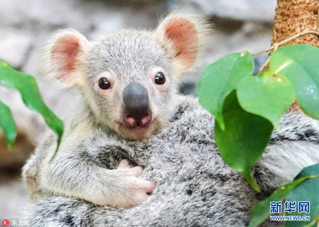 英动物园考拉宝宝首次亮相 趴妈妈脑袋上张望一脸呆萌