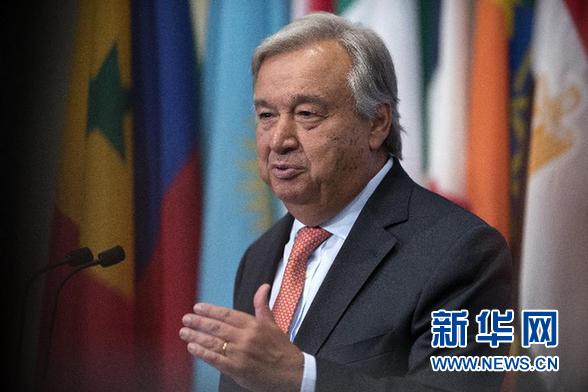 资料图片:8月16日,在位于纽约的联合国总部,联合国秘书长古特雷斯向记者发表讲话。联合国秘书长古特雷斯表示,应政治解决朝核问题。