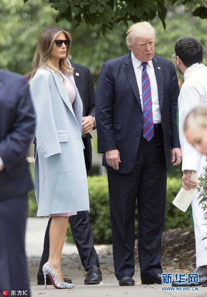 当地时间2017年9月3日,美国华盛顿,美国总统特朗普偕“第一夫人”梅拉尼亚前往,圣约翰教堂为飓风“哈维”遇难者祈福。