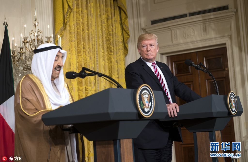 当地时间2017年9月7日,美国华盛顿,美国总统特朗普与科威特埃米尔萨巴赫举行会晤,并出席新闻发布会。(图片来源: 东方IC)