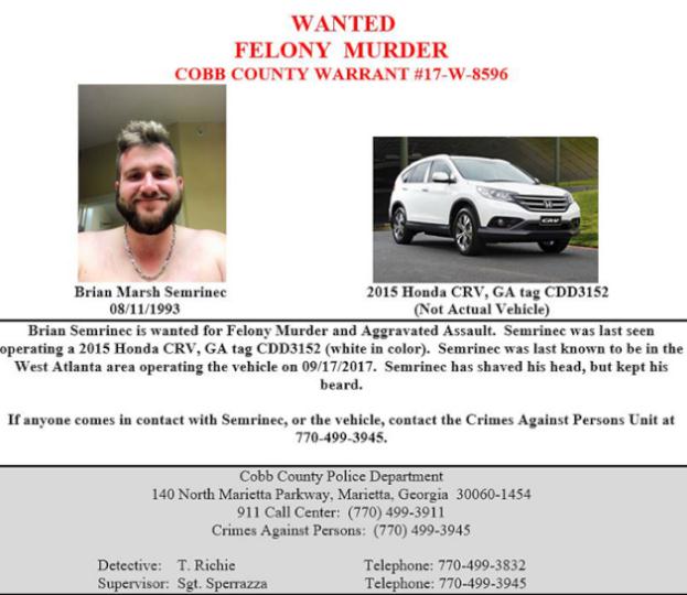 目前警方已对在逃的塞林瑞克以谋杀和重伤害罪发出通缉,他已剃掉头发,但仍留有胡须。警方呼吁,凡发现塞林瑞克行踪或本田汽车者,尽速向举报,电话:(770)499-3945。