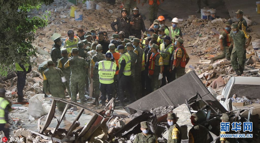 当地时间2017年9月20日,墨西哥墨西哥城,救援工作继续。墨西哥7.1级地震已造成至少248人死亡。(图片来源: 东方IC)