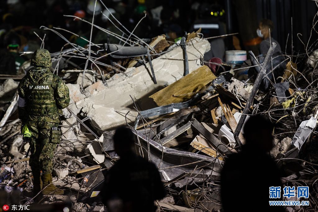 当地时间2017年9月20日,墨西哥墨西哥城,救援工作继续。墨西哥7.1级地震已造成至少