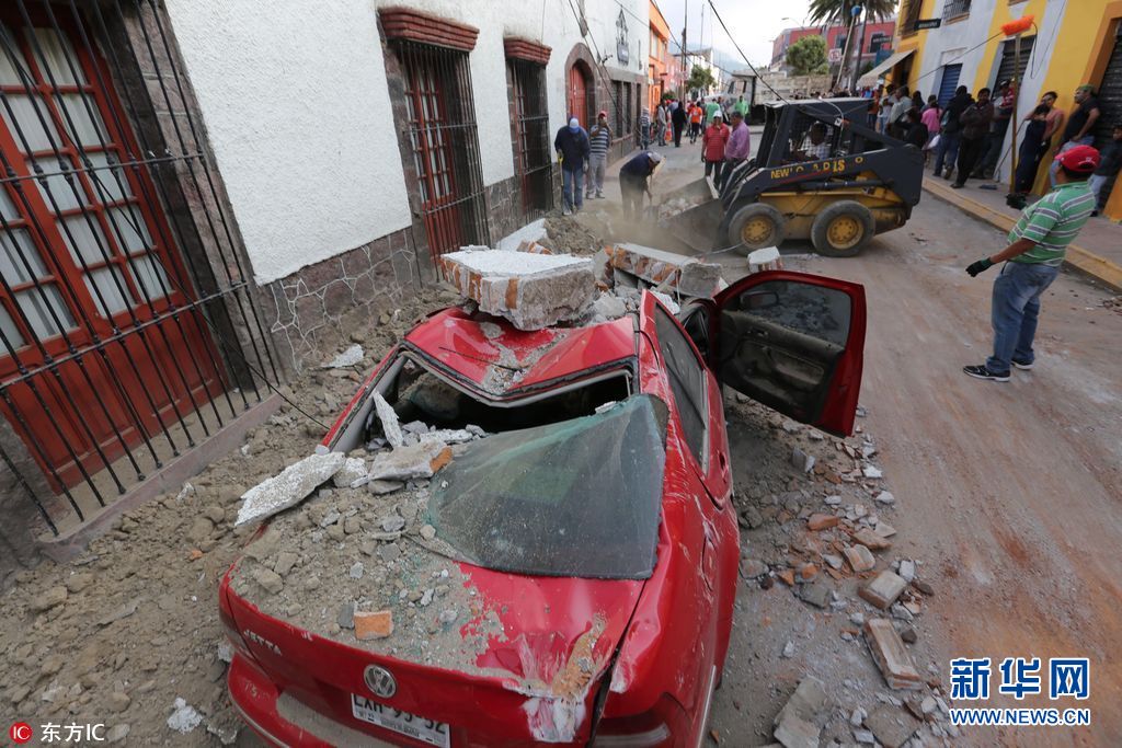 当地时间2017年9月19日,墨西哥墨西哥城,墨西哥发生7.1级地震后,救援人员赴现场紧急救援。据悉,地震死亡人数至少有224人。(图片来源: 东方IC)