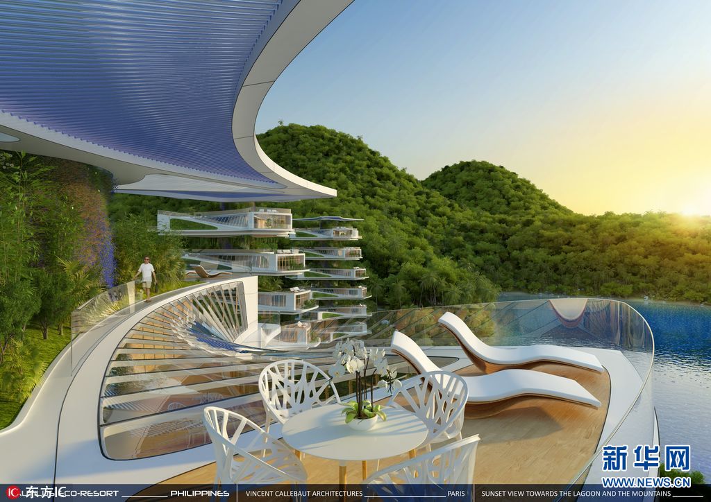 2017年9月21日报道(具体拍摄时间不详),巴黎生态建筑师Vincent Callebaut公布了一项为菲律宾新的生态旅游度假胜地设计的“鹦鹉螺生态度假村提案,他的灵感来自于天然海岸线,广泛使用摇篮到摇篮和其他可持续设计原则。