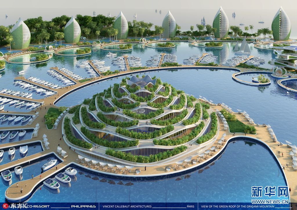 2017年9月21日报道(具体拍摄时间不详),巴黎生态建筑师Vincent Callebaut公布了一项为菲律宾新的生态旅游度假胜地设计的“鹦鹉螺生态度假村提案,他的灵感来自于天然海岸线,广泛使用摇篮到摇篮和其他可持续设计原则。