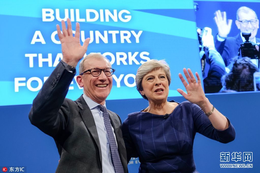 英国首相特蕾莎-梅在保守党年会发表演讲 与丈夫秀恩爱