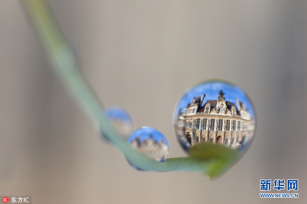 以水滴作滤镜 法国男子拍摄巴黎地标别样美景(组图)