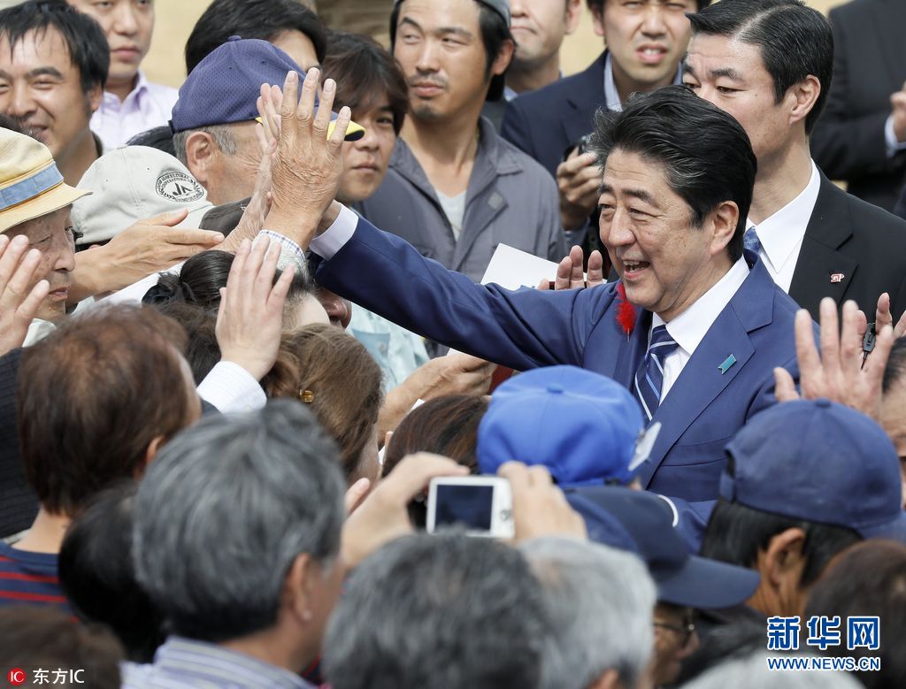 日本首相安倍为竞选造势 与支持者击掌笑得合不拢嘴(组图)