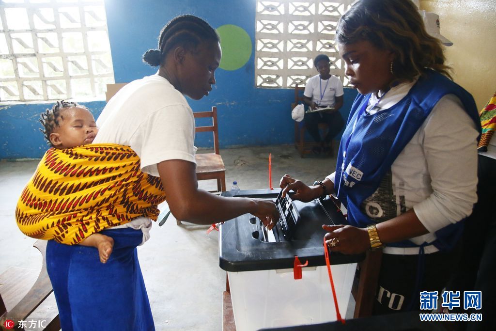 当地时间2017年10月10日,利比里亚首都蒙罗维亚,利比里亚举行总统大选,民众排队投票。(图片来源: 东方IC)