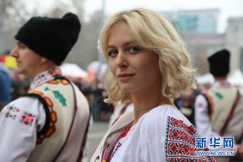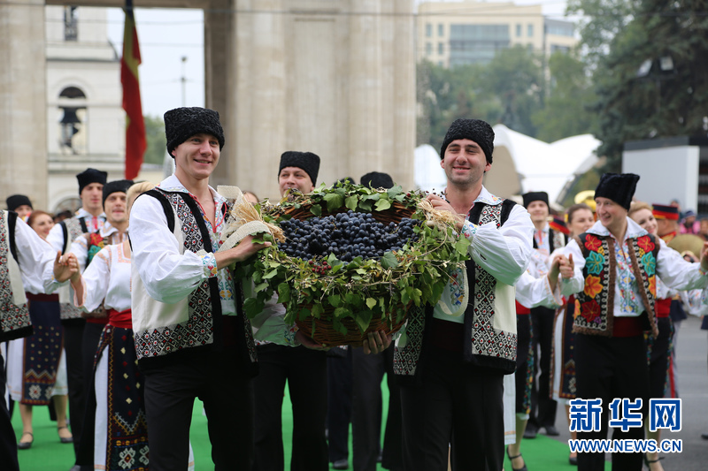 身穿民族服装的摩尔多瓦女子在葡萄酒节开幕式上。新华网发 林惠芬摄