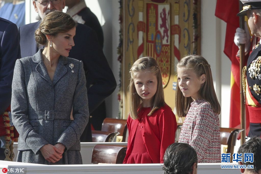 西班牙举行国庆阅兵 国王王后携两位小公主出席