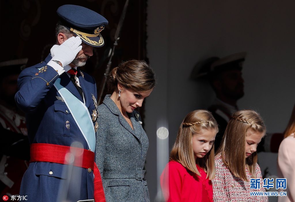 西班牙举行国庆阅兵 国王王后携两位小公主出席