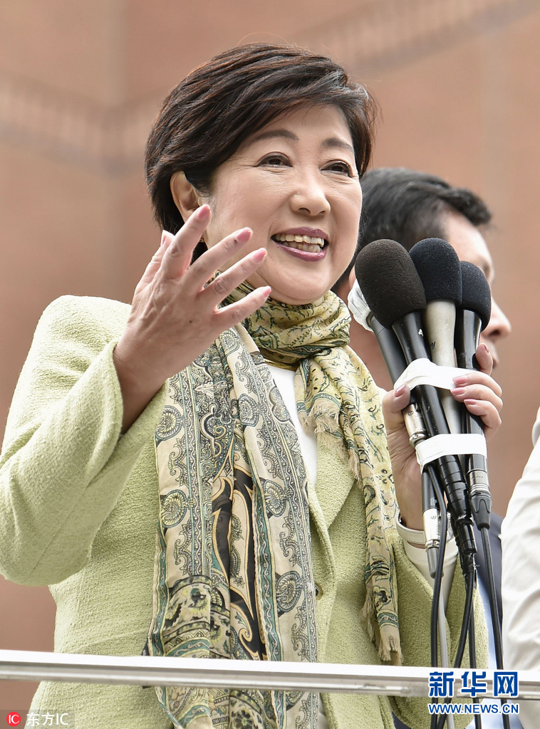 当地时间2017年10月14日,日本兵库县,东京都知事、日本新政党希望之党党首小池百合子在宝冢市举行竞选集会。日本众议院选举将于本月22日举行。图片来源:东方IC