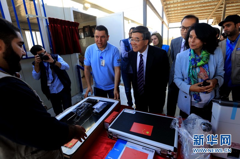 中国驻约旦大使潘伟芳参观难民营内的医疗中心。新华网发(穆罕默德·阿布·古什摄)
