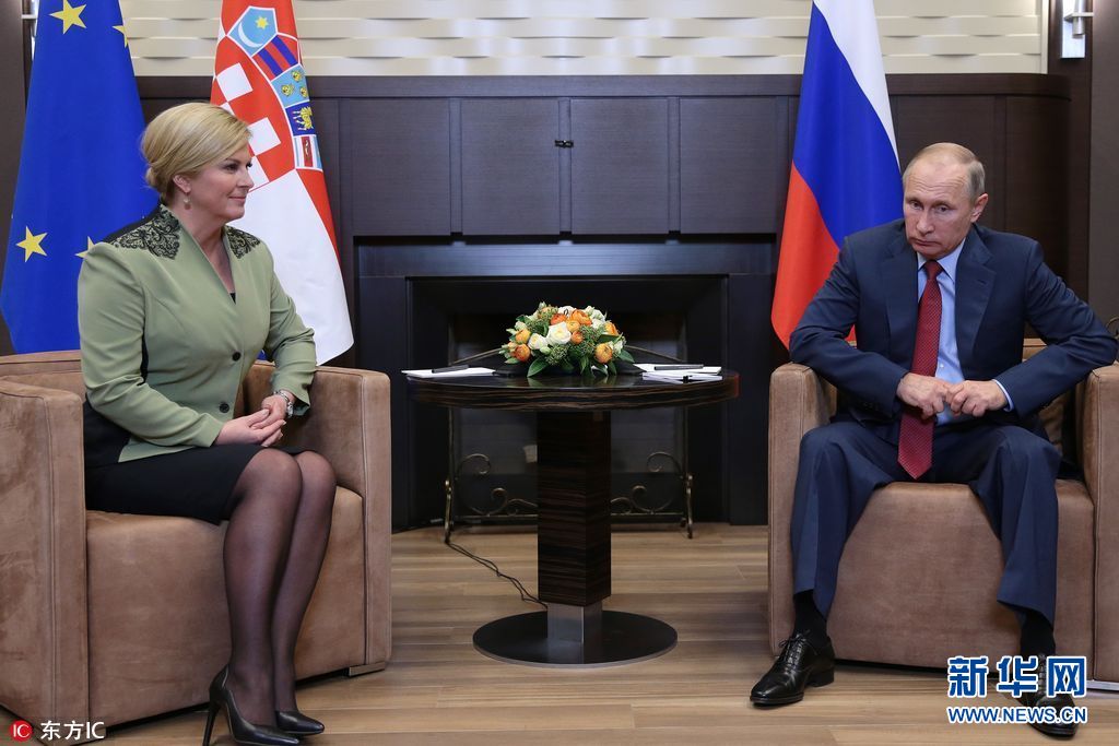 当地时间2017年10月18日,俄罗斯索契,俄罗斯总统普京会见了来访的克罗地亚总统基塔罗维奇。(图片来源: 东方IC)